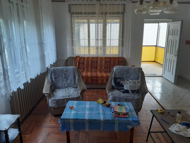 100 qm großes Einfamilienhaus mit Terrasse, Balkon, 2 Schlafzimmer, großes Wohnzimmer, Esszimmer.Die Größe des Grundstücks beträgt 845 qm.Im Jahr 1982 wurde es sehr gut